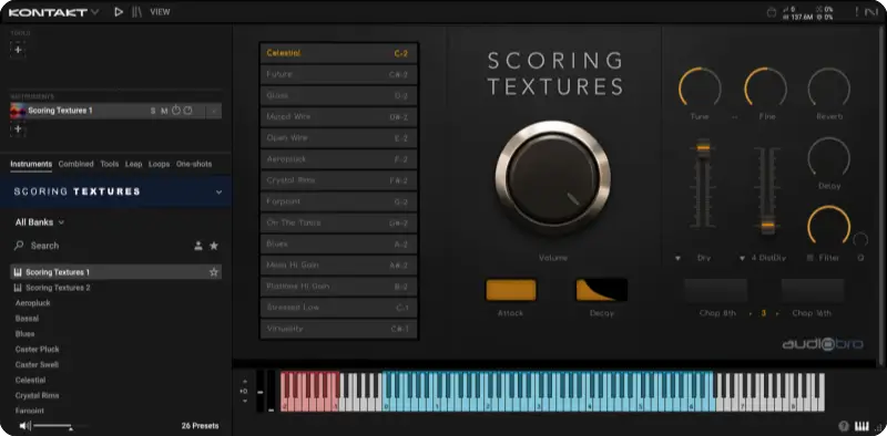 Audiobro Scoring Textures 是一款专为电影、游戏和氛围音乐设计的声音库,提供丰富的纹理和环境音色,帮助创作者快速构建空间感和情绪层次。