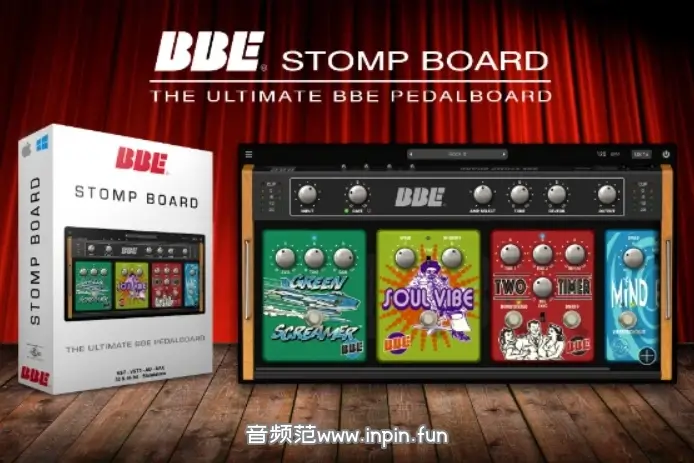 BBE Stomp Board 是由 BBE Sound 推出的一款“虚拟脚踏板+放大器模拟”插件套件/宿主应用。它集合了一个可运行于 DAW 的脚踏板宿主环境(也有独立应用版本),内含放大器模拟和多款经典脚踏效果,专为电吉他/电贝斯录音与制作设计。