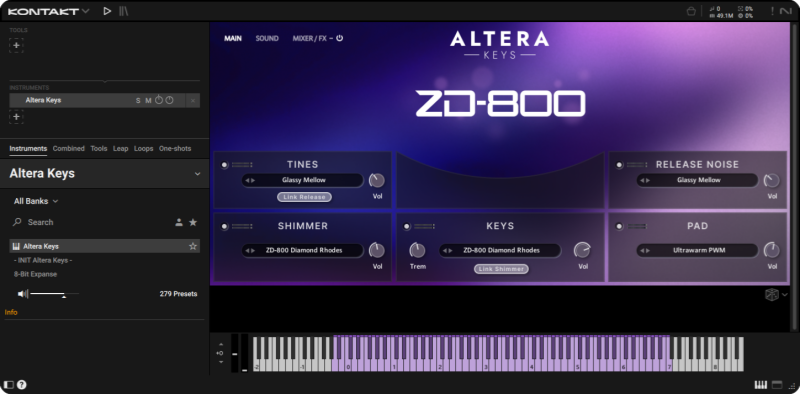 Impact Soundworks Altera Keys 是一款面向 键盘手、制作人与作曲家 的虚拟键盘乐器音色库,它将 1970–80 年代经典电钢琴、合成器与键盘 音色的精髓融合到一个现代化、模块化的 Kontakt 仪器中。该库使用 合成 + 物理建模 生成声音,既借鉴经典键盘色彩,又能创造全新的纹理与声音效果。