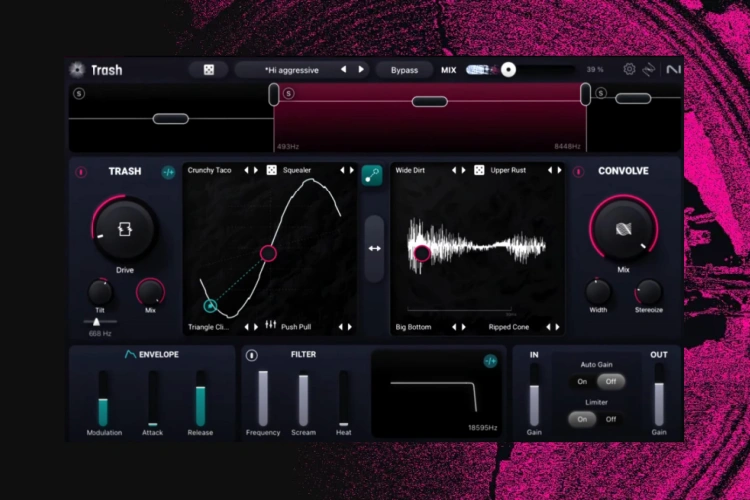 iZotope的Trash 2是一款强大的失真插件,适用于任何乐器。它提供了丰富的波形塑造、卷积等功能,能够产生独特的纹理和音调。这款插件不仅适用于吉他,也已成为各种音乐制作和音频工程中不可或缺的工具。你可以使用它来增加鼓和贝斯线的饱和度,为吉他创造迷幻纹理,或者扭曲合成器以产生梦幻和复古的音调。