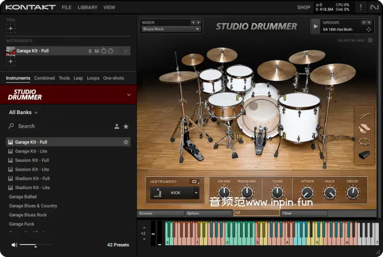 Native Instruments Studio Drummer 是 NI 出品的 Kontakt 平台顶级原声鼓音色库,以干净专业的录音、深度可控的混音、海量真实 MIDI 律动为核心,主打流行 / 摇滚 / 爵士 / 金属等现代风格的 “录音室级鼓组” 制作,支持免费 Kontakt Player,是行业内最稳定、易用的全能鼓组之一。