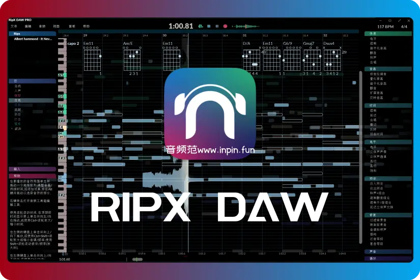 RipX DAW Pro 8 是由 Hit’n’Mix 开发的一款“AI‑驱动数字音频工作站 (DAW) + 音频编辑/混合工具”。它最大的特点是把传统意义上分开的音频 (audio) 与 MIDI 轨道统一处理,并且将混音后的音频拆分 (stem separation) 为可编辑的独立元素,使你可以像操作 MIDI 那样,对音频进行细致的编辑、重组、修复与创作。