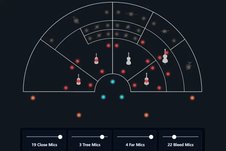 多麦克风+Bleed 收音:录音时使用了大量麦克风,包括近距、中距、远距以及“Bleed(溢出)麦克风”捕捉弦乐以外乐器的自然溢声。这为弦乐提供了更真实的环境声与舞台沉浸感。