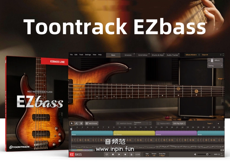 EZbass 是 Toontrack 推出的一款虚拟贝斯器 (bass virtual instrument),不仅是采样库,还带有强大的作曲与编辑功能。它旨在帮助制作人、作曲家在乐曲中轻松地加入真实、富表现力的贝斯部分。