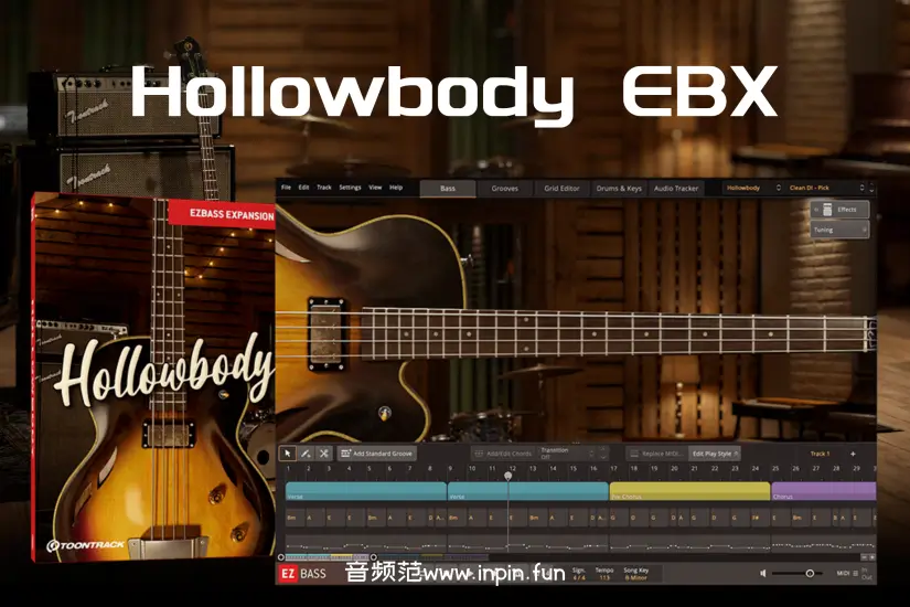 Toontrack Hollowbody EBX 是一款专为现代音乐制作设计的贝斯音源扩展,专注于复古空心电贝斯的声音和灵活性。