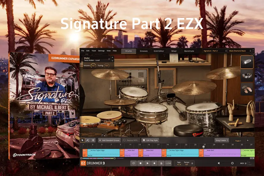 Toontrack Signature Part 2 EZX 是一款为 Toontrack EZ Drummer 或 Superior Drummer 设计的扩展包,由多届格莱美奖获得者 Michael Ilbert 在洛杉矶的传奇录音室 Sunset Sound 的 Studio 中录制。