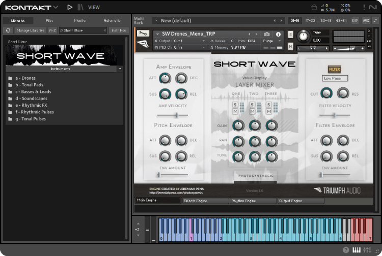 Short Wave 是由 Triumph Audio 出品的一款实验性声音设计采样库。其核心概念是以全球短波无线电信号为原始录音素材,通过多层声音处理(剪辑、滤波、变调、空间化与失真)创造出独特的电子噪声与氛围质感。