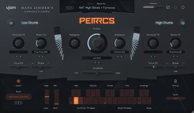 uJAM Symphonic Elements: PERRCS 是一款面向现代影视配乐工作流程而设计的交响打击“节奏引擎”,它不是让你思考“敲什么鼓”,而是帮助你直接解决“这一段音乐该如何前进”。