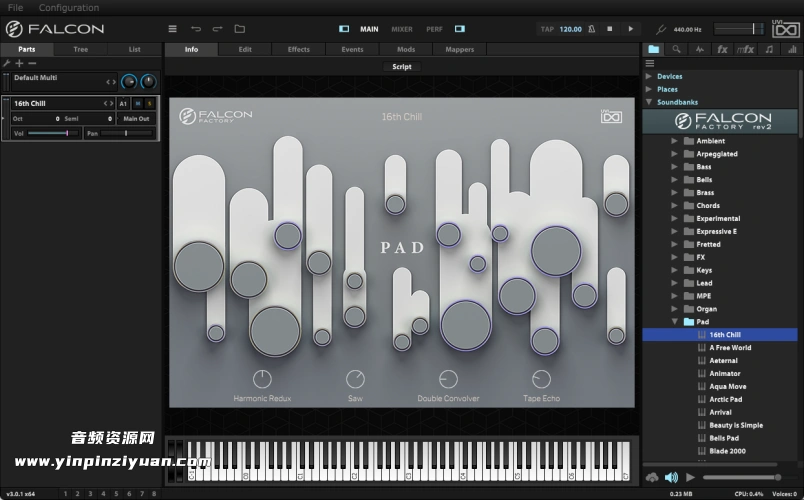 丰富预设与扩展库:附带大量工厂预设,覆盖从传统合成器音色、打击乐、空灵氛围、电影音效、弦乐片段等多种类型。此外,UVI 提供专用音色扩展包(Expansions)与音色库与 Falcon 完美整合。
