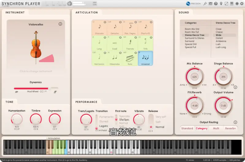 - 动态层级丰富,多速层采样 + velocity crossfade + expression / modwheel / CC 动态控制 — 能实现演奏细腻变化、力度渐变、情绪表达、流畅连奏等。